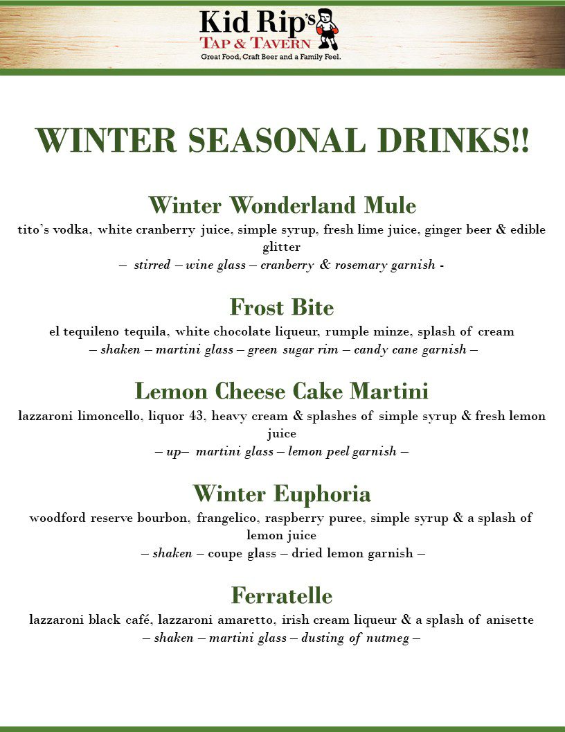 KID RIP’S SPECIALTY / SEASONAL COCKTAIL MENU